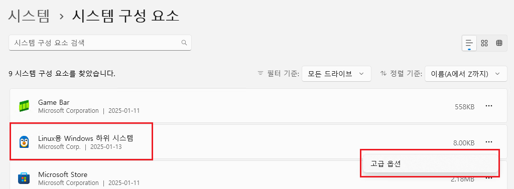 Windows 11에 구성한 WSL Ubuntu 삭제