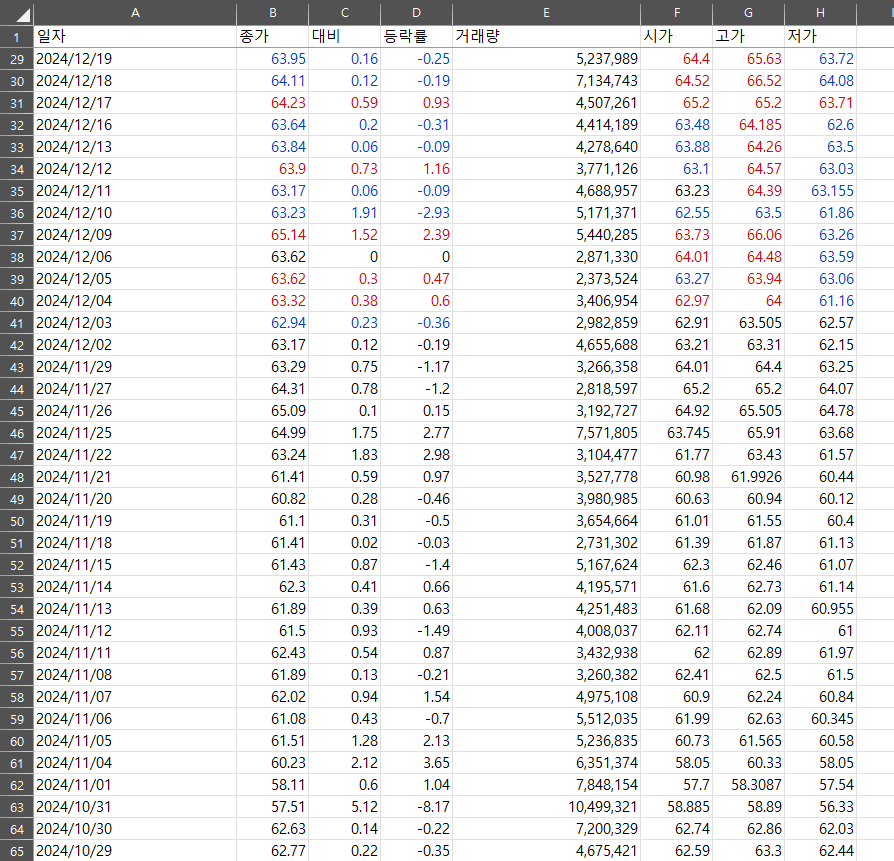 - 4월개월 평균 종가 - 63.92 (2024.10.11 ~ 2025.02.07 종가 평균)