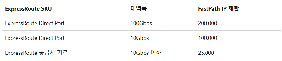 - Fastpath를 적용하게 되면 양방향 모두 ExpressRoute Gateway를 우회(녹)하여 데이터 전송이 진행