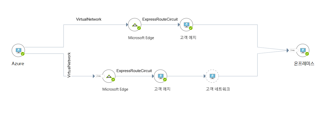 ExpessRoute를 사용하는 온프레미스와 Azure 간의 데이터 흐름은 설계상 비대칭적임