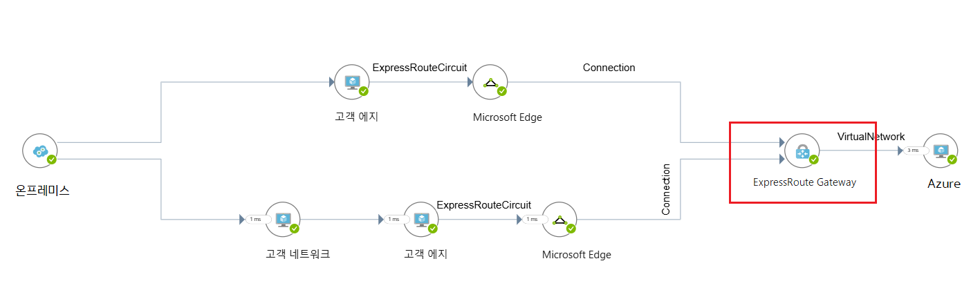 - (주) 온프레미스에서 Azure로 가는 트래픽은 ExpressRoute Gateway를 통해 전송