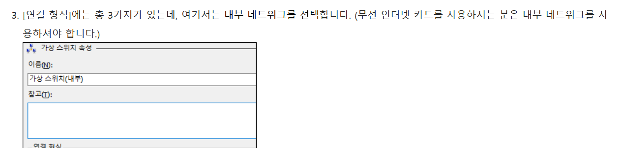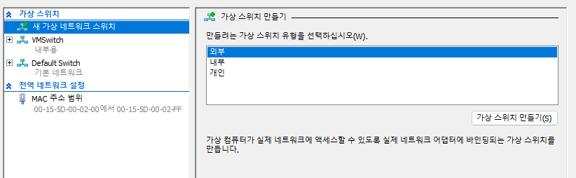 가상 스위치에서 외부 네트워크를 유선으로 구성 시