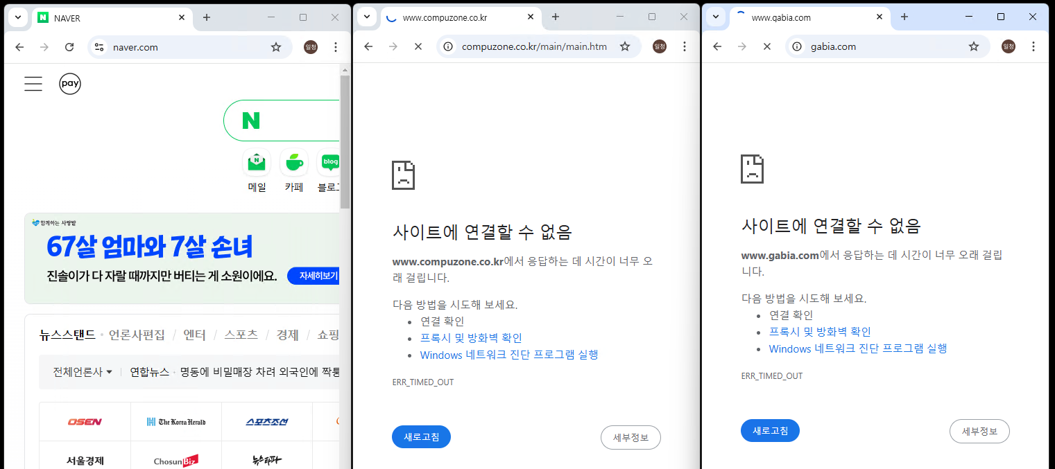 - 가상 스위치에서 외부 네트워크 wifi 구성 삭제 후 - 사이트 접속 이상 없음