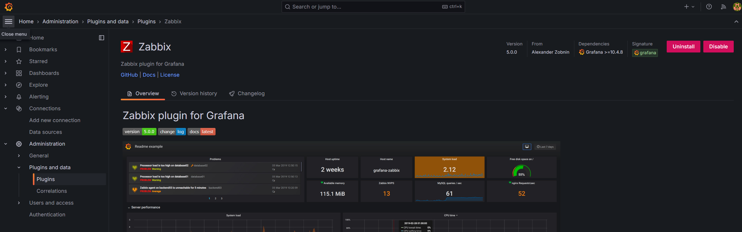# docker exec -it grafana grafana cli plugins install alexanderzobnin-zabbix-app