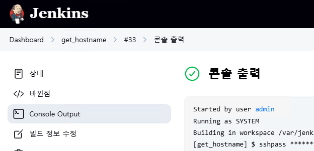 지금 빌드 클릭 후 Console Output 확인