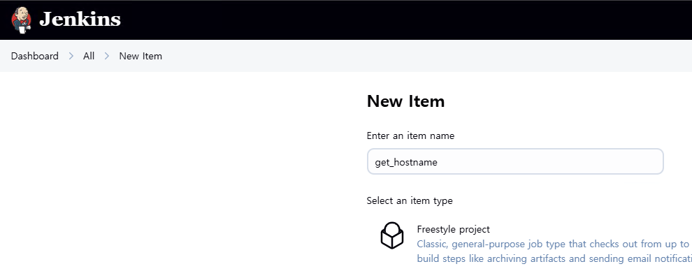 - Dashboard - + 새로운 Item 생성 (Freestyle project로 생성)