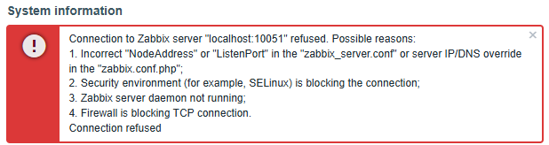 - 프론트엔드 서버와 Zabbix 서버가 정상적으로 통신이 되지 않아 발생