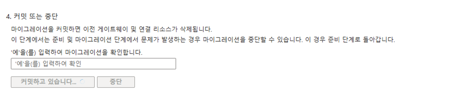 작업은 아래와 같이 4단계로 진행이되며, “ 4. 마이그레이션 커밋” 전까지는 롤백이 가능.