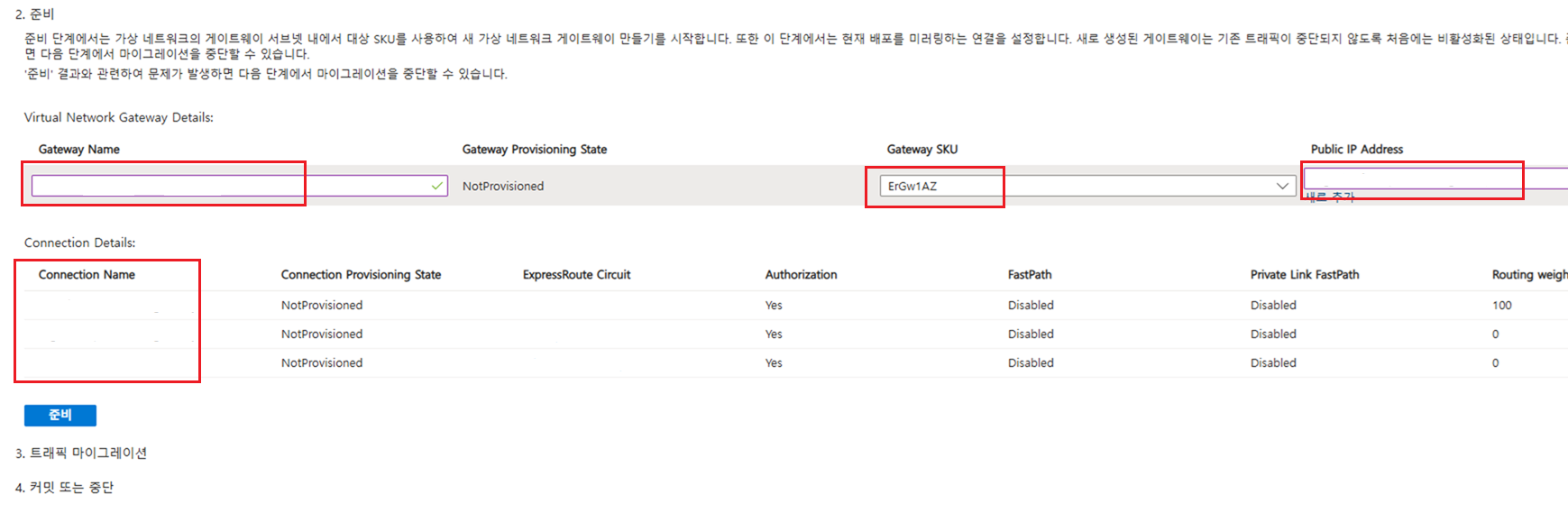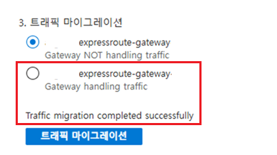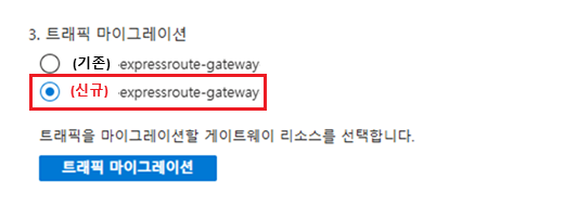 - 신규로 생성 된 ER GW 선택 후 "트래픽 마이그레이션" 클릭