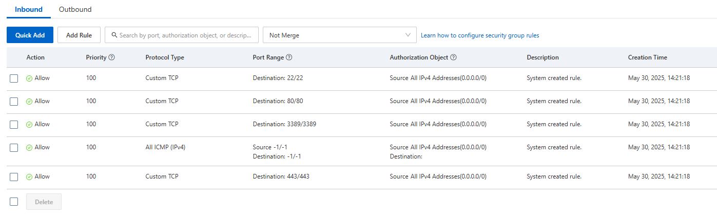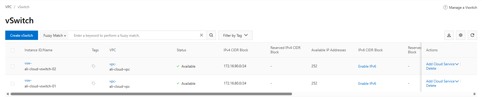 - 규칙을 생성하고 vSwitch를 연결하여 내부 subnet간 트래픽(inbound/outbound) 제어