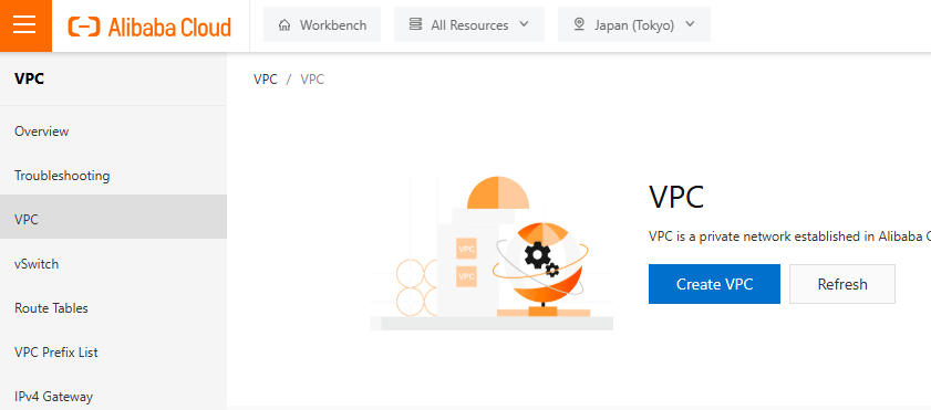 알리바바 클라우드 포탈 접속 후 상단 검색창에서 "VPC" 검색