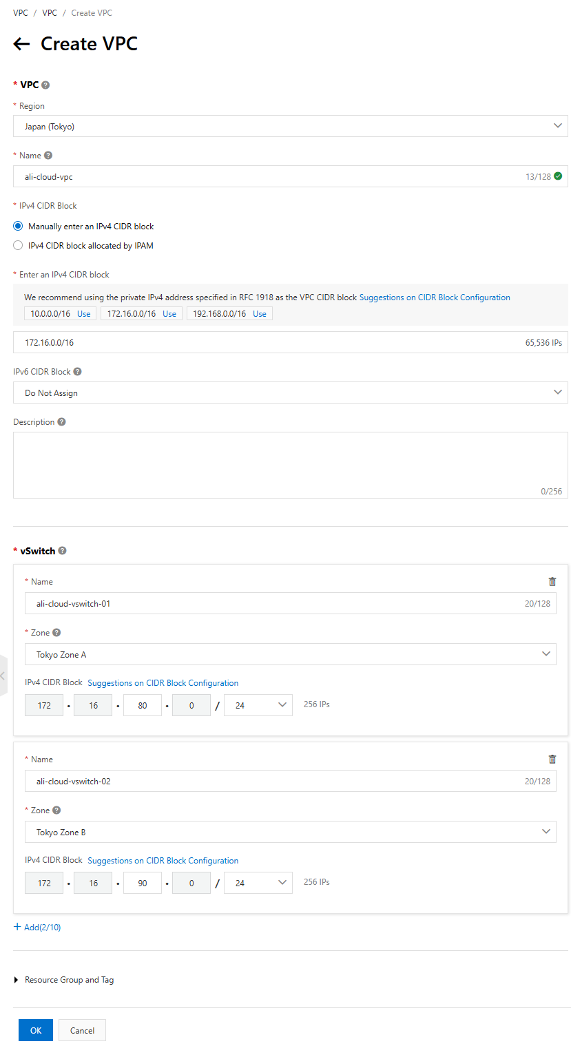 - IPv4 CIDR Block - Private Network으로 사용할 구간 선택