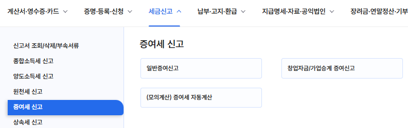 - "세금 신고" - "증여세 신고" - "일반증여신고" 클릭