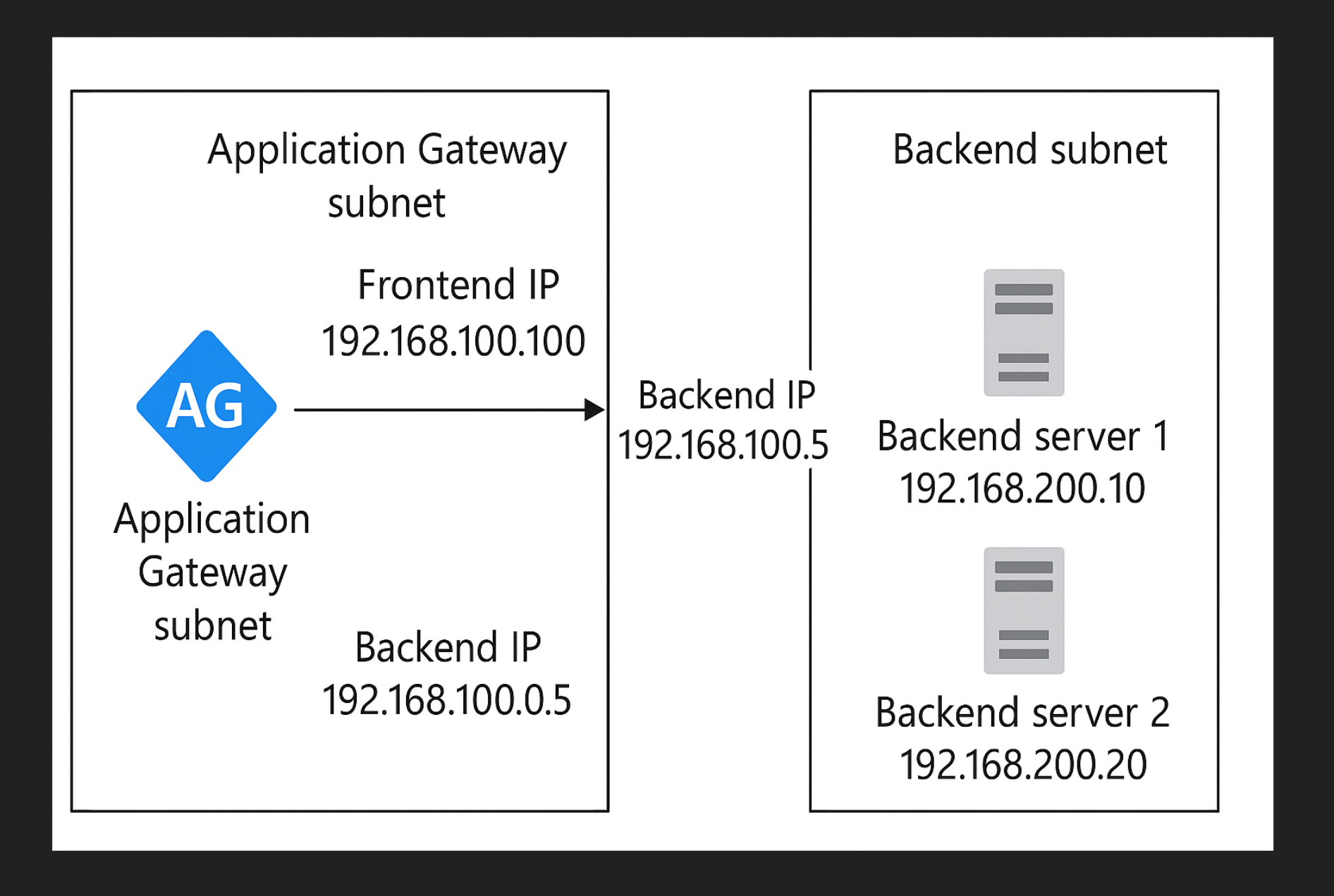 AGW는 Backend Server에 접속하기 위해 AGW Subnet에서 임의의 Backend IP(192.168.100.5)를 생성하여 Backend Server에 접속하게 되고, Backend Server 접속 로그엔 AGW Frontend IP(VIP) 192.168.100.100이 아닌 임의로 생성 된 Backend IP 192.168.100.5가 접속 장비로 남게 됨.