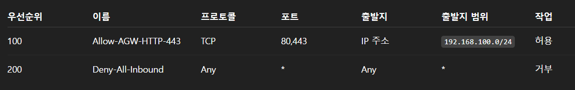 NSG 생성 시 AGW Frontend IP(VIP) 만 오픈하면 안되고 AGW Subnet - 192.168.100.0/24 전체 오픈 필요.
