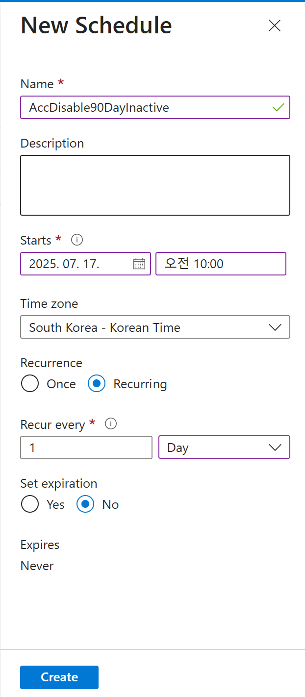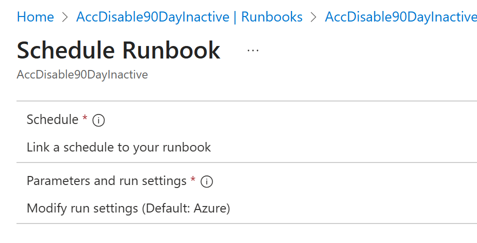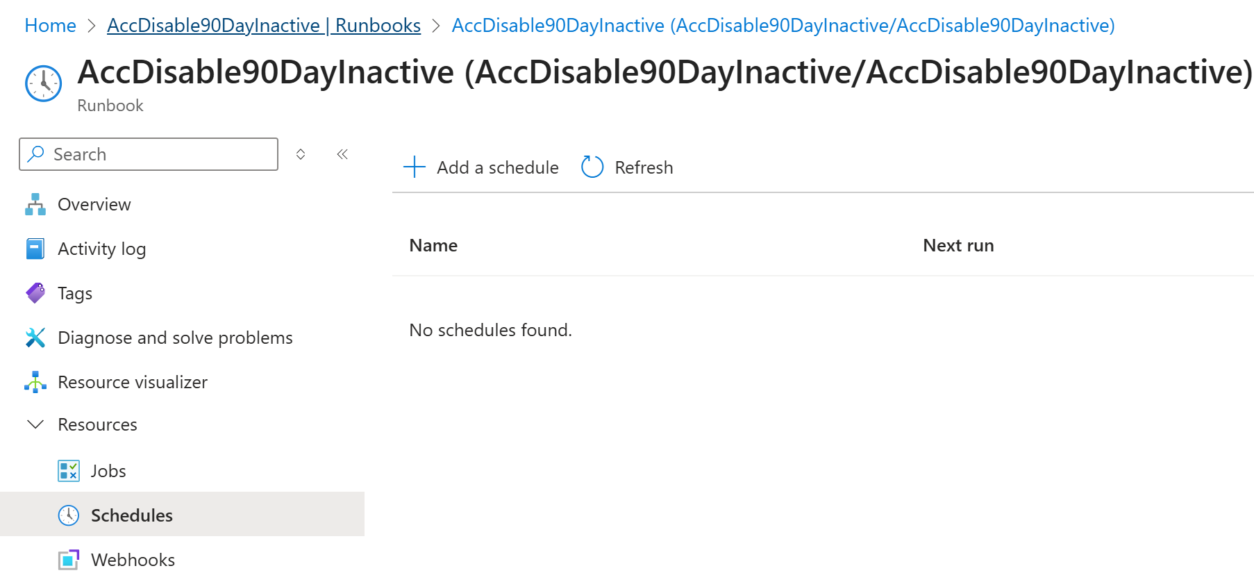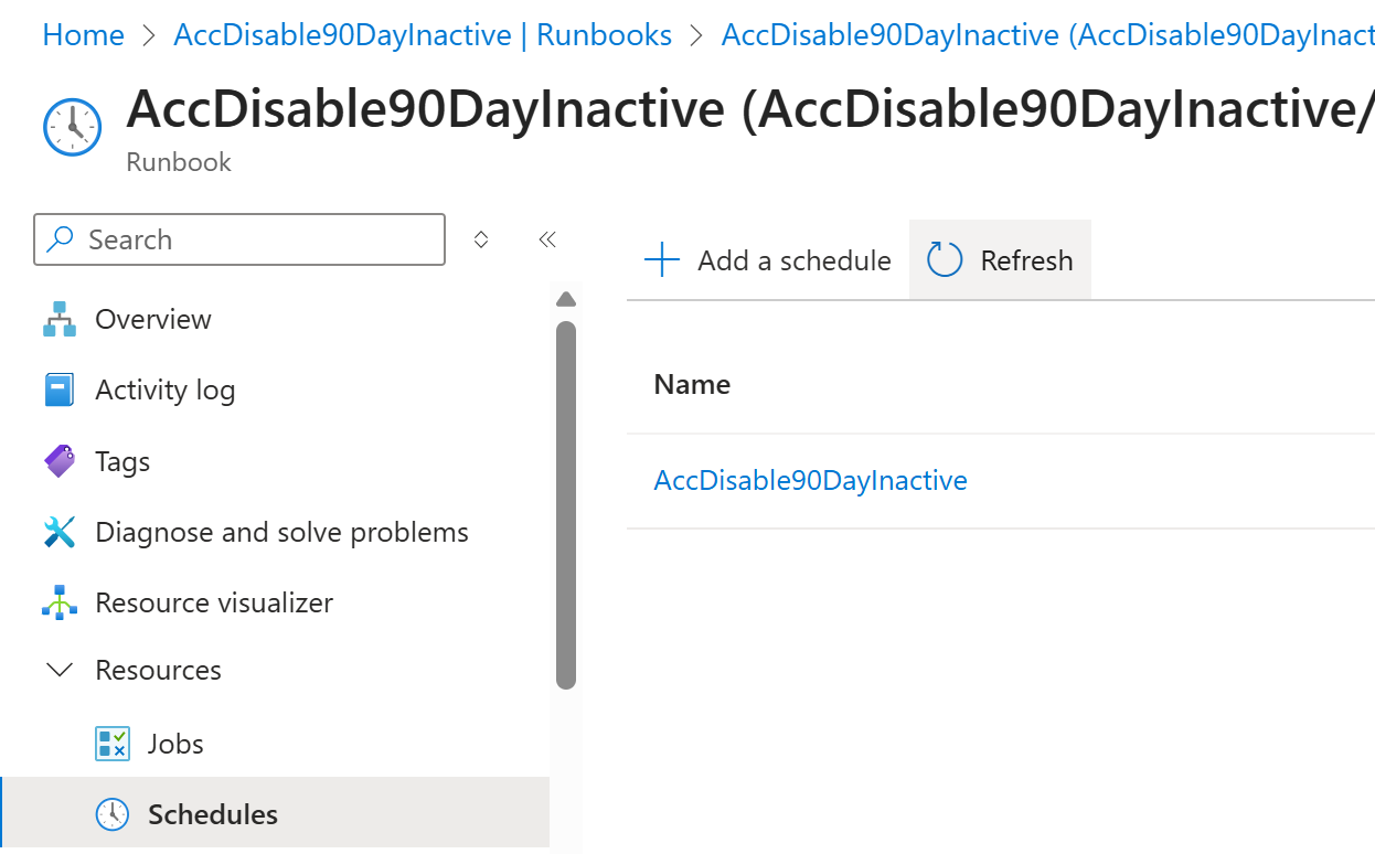 - AccDisable90DayInactive 계정 아래 schedules 가 아닌 runbook 하위에 있는 schedules