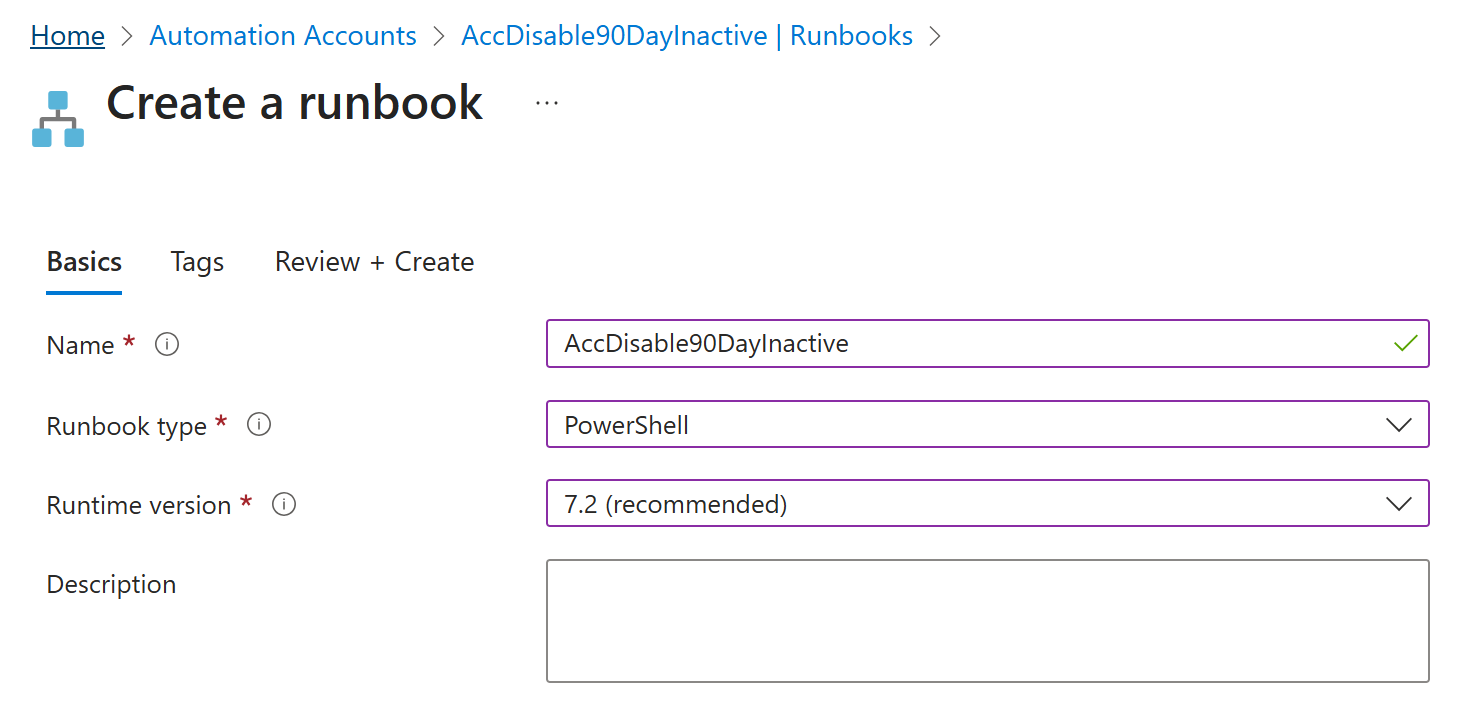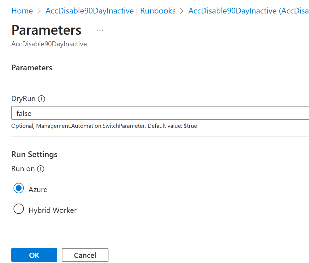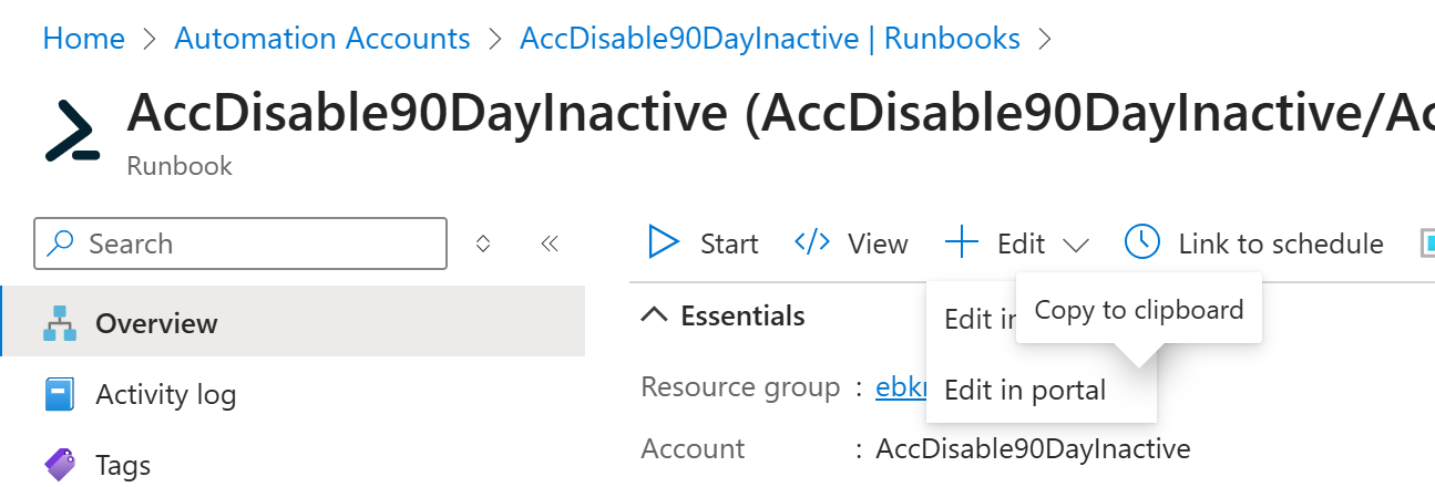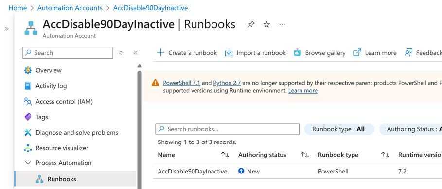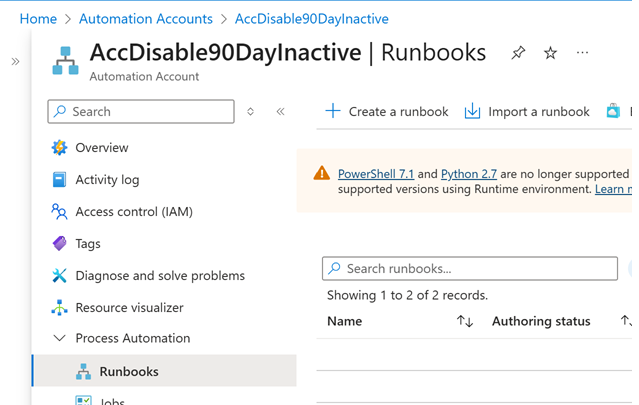 - AccDisable90DayInactive 계정 아래 schedules 가 아닌 runbook 하위에 있는 schedules