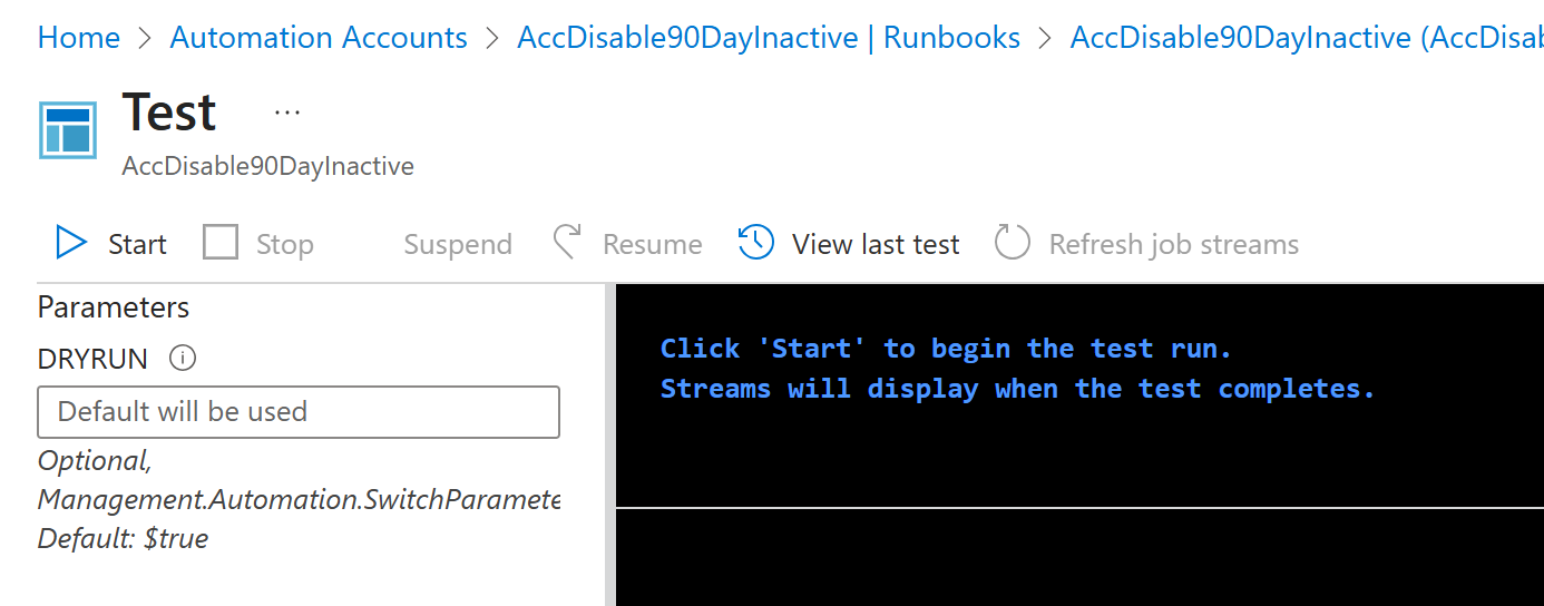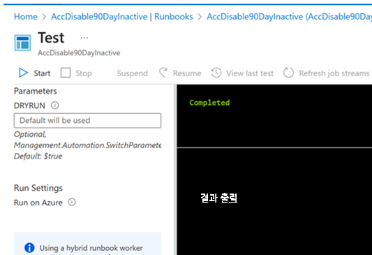 - Runbook이 작성한 코드대로 실행되지만, 실제 Azure 리소스에는 영향을 주지 않음