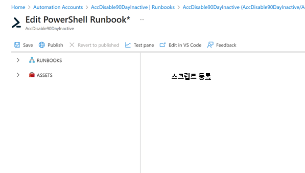 이 후 과정은 Azure portal Automation Runbook 에서 진행