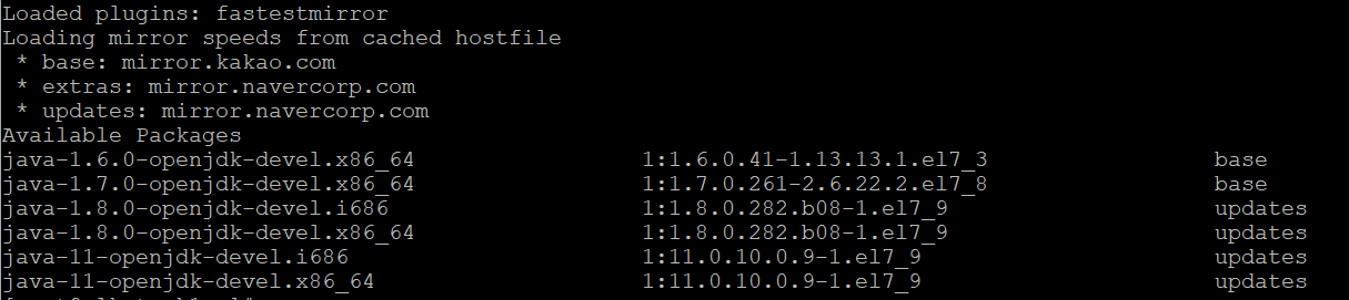 # yum list java*jdk-devel