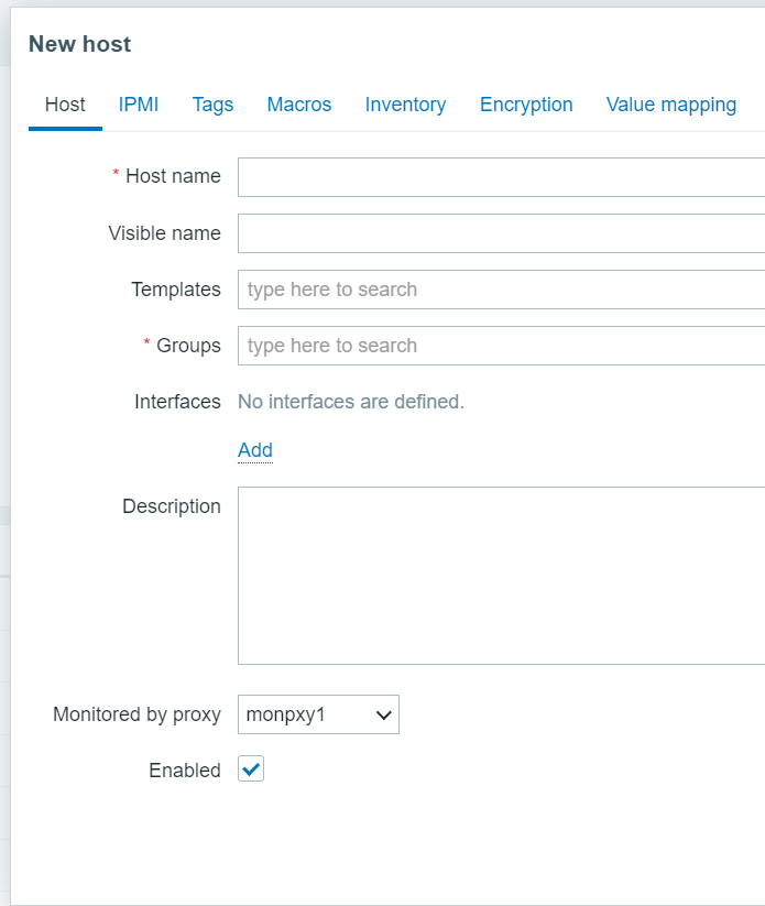 이 후 호스트 등록 시 Monitored by proxy 에서 생성한 proxy 서버를 지정해 주면 됨