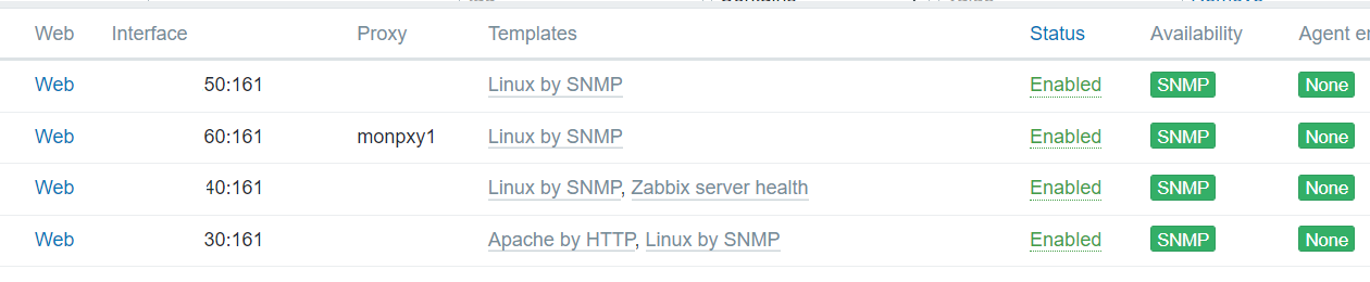 Configuration - Hosts 에서 확인 해 보면 proxy 에 등록 된 호스트는 proxy 서버가 표시 됨.