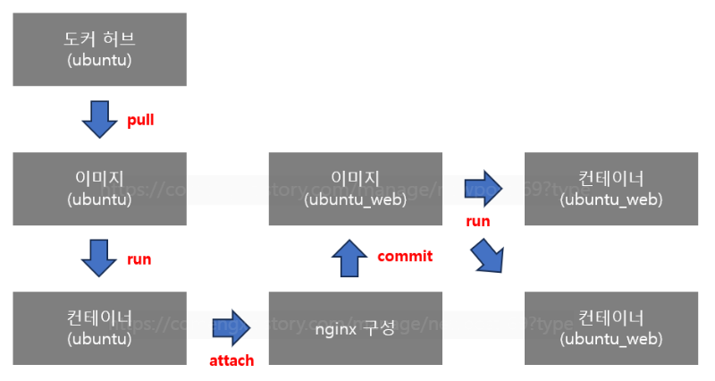 - ubuntu_web1 - 신규(ubuntu_web) 이미지로 생성한 컨테이너 (nginx 설치되어 있음)
