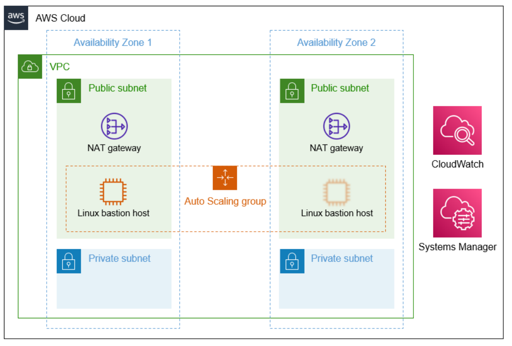AWS에서는 가상 프라이빗 클라우드(VPC)의 프라이빗 및 퍼블릭 서브넷에 위치한 인스턴스에 대한 보안 액세스를 제공한다.