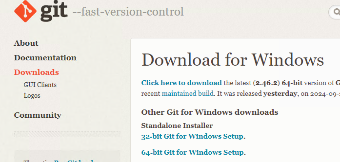 사용 환경에 맞는 버전 다운로드 (64-bit Git for Windows Setup 설치)