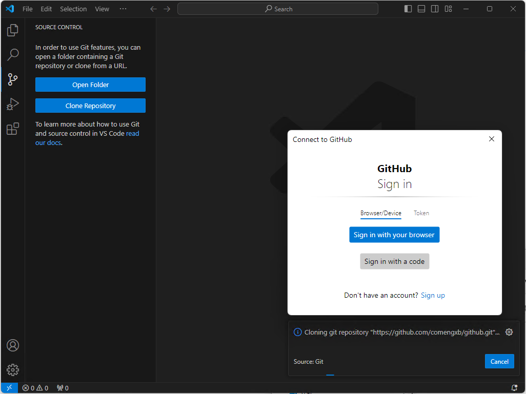 vscode에서 github 로그인 진행
