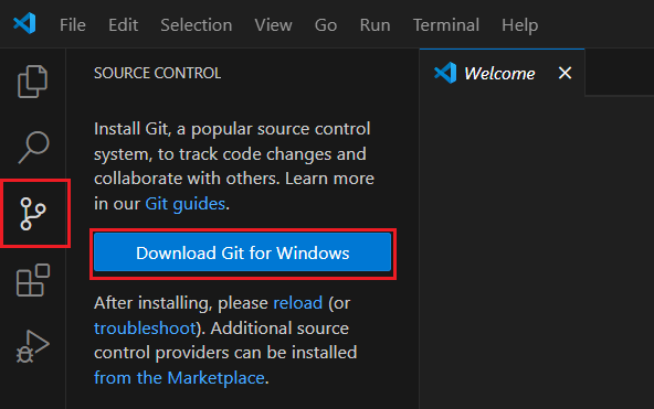 vscode 실행 후 "Source Control" -> "Download Git for Windows" 클릭