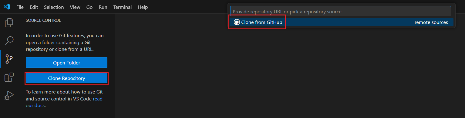 Git 설치 후 "Source Control"을 클릭하면 Git 다운로드 화면이 없어짐