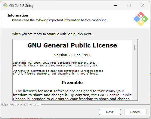 Open을 클릭하여 Git 다운로드 사이트로 이동