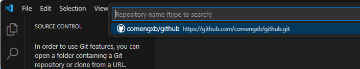 vscode 상단에 연결 된 github 주소 클릭 후 로컬 저장소 위치 선택