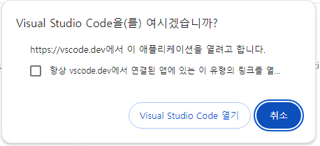 vscode에서 열건지 물어보면 "Visual Studio Code 열기" 선택