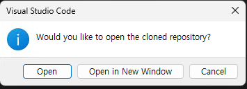 open을 선택하면 github에 있는 내용을 로컬 디렉토리로 복제