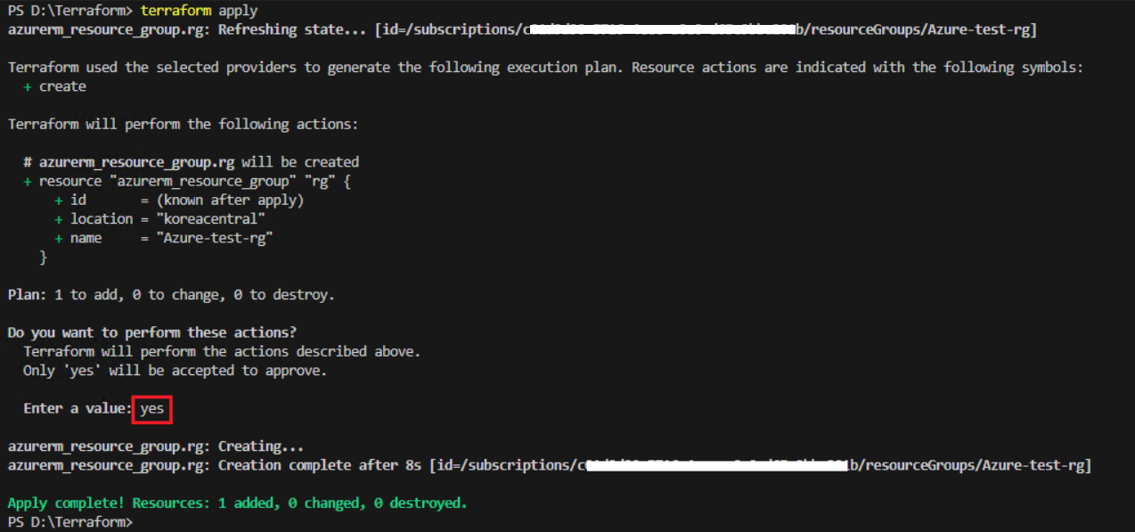 - terraform apply -> "yes" 입력