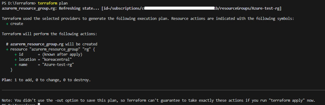 VSCode 연동 및 Resource Group 생성 테스트